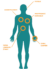 Reins, système digestif, foie, système nerveux périphérique, rarement le coeur.